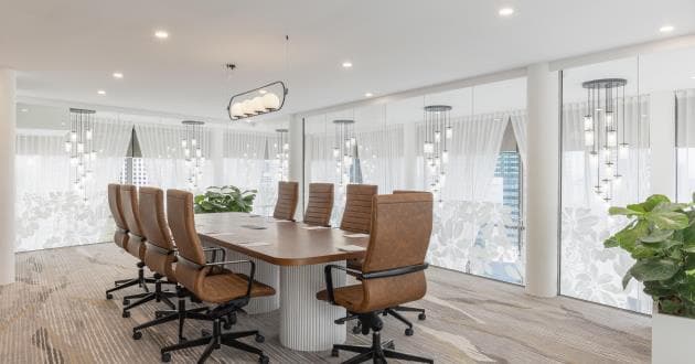 The elevated Sky Boardroom features stunning views of Brisbane City and the Roma Street Parklands. Perfect for hosting board meetings, or intimate lunches and dinners.