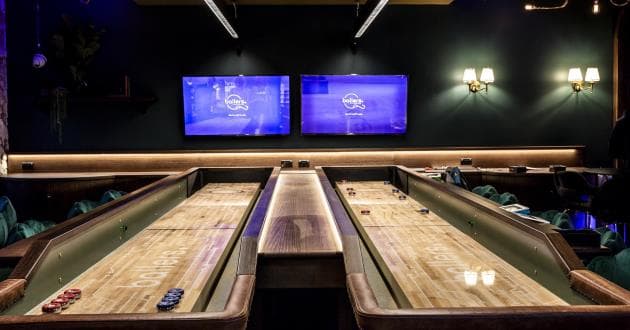 Great pub to do cool activities, shuffle board and darts being our favourite. The Manager was nice and tried to be very accommodating and explained different games well. When we arrived the power had been out so we couldn't order food or play games, we decided to go to Lygon St (just around the corner, walking distance) for dinner and come back. When we came back, again we couldn't play any games and the girl couldn't tell us how long until we could, and help us to know we had been placed in a queue to play, she just said to have a drink and come back and see. I really would like to see this system improved maybe a buzzer system given to us to know when it was our turn. We couldn't play anything upstairs as they had a private function on, so we couldn't play ball pit ping pong. There was only 1 billiard table downstairs so we didnt get to play that. We had a drink, only 1 barman on a Sat night and making cocktails so there was a bit of await. I went back to see if we could play shuffe board as 2 were empty, she said no she had others ahead of us first. I went back 15 mins later and spoke to Manager saying shuffle board was still free and he said we could play. The different games for shuffle board were really fun, we paid for 1/2hr, next time we will pay for an hour but since we had dinner in Lygon St we had smashed our finances for the night. I told the Manager being short we found it hard to get puc's back between each turn and would be great to have a stick to use. We also said it was slippery where you stand for shuffle board with sand on floor, he said there should be a mat there and went and got one but didn't put mat on table next to us. I'd suggest they make sure these are put out before people play so no accidents happen. The different darts games were great too, again next time we would pay for 1hr as 1/2hr goes too quick. Great venue just needs to have better organisation and maybe do all bookings online with time slots to keep too and no option on games to keep playing unless no bookings afterwards.