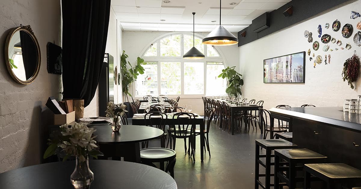 Bathed in natural light by day and glowing softly by night, Bar Lourinhã’s upstairs private dining room is defined by a magnificent arched window overlooking Melbourne’s iconic laneways. During daylight hours, the room feels open and airy; as evening falls, the streetlights create an intimate, atmospheric backdrop that is unmistakably Melbourne.
