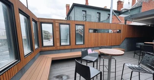 •Positioned privately upstairs of the Duke of Edinburgh Hotel, this function room is a versatile space with a bar, stage, dance floor, projector and rooftop beer garden. We can provide catering for all group sizes according to your needs.