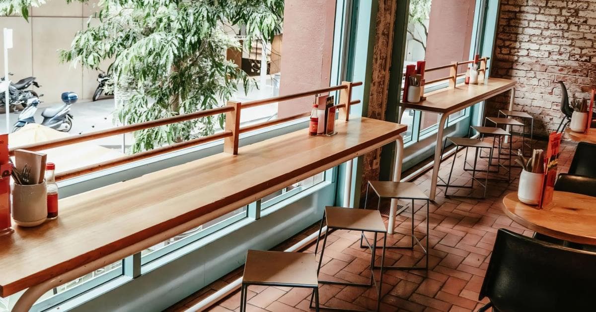 Upstairs with a street view! This is the perfect space for casual dining and fun events. The windows open up which creates a Melbourne vibe and good times.