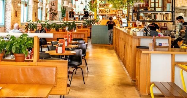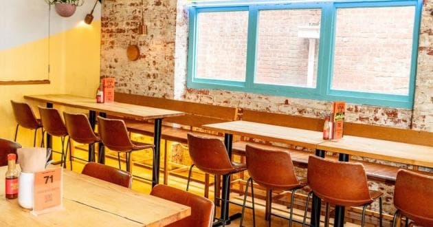 Upstairs with a street view! This is the perfect space for casual dining and fun events. The windows open up which creates a Melbourne vibe and good times.