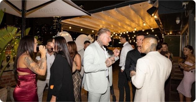 The Terrace stretches elegantly along the rooftop, offering unparalleled vistas of the city skyline. An area perfect for your next event with a mix of bar leaners and low tables with seating, retractable roof and side covers, as well as heaters and misters to keep you and your guests comfortable. Feel like you're on your own private rooftop with private entrance to your space from the lobby. Recommended for events with 40 to 70 guests.