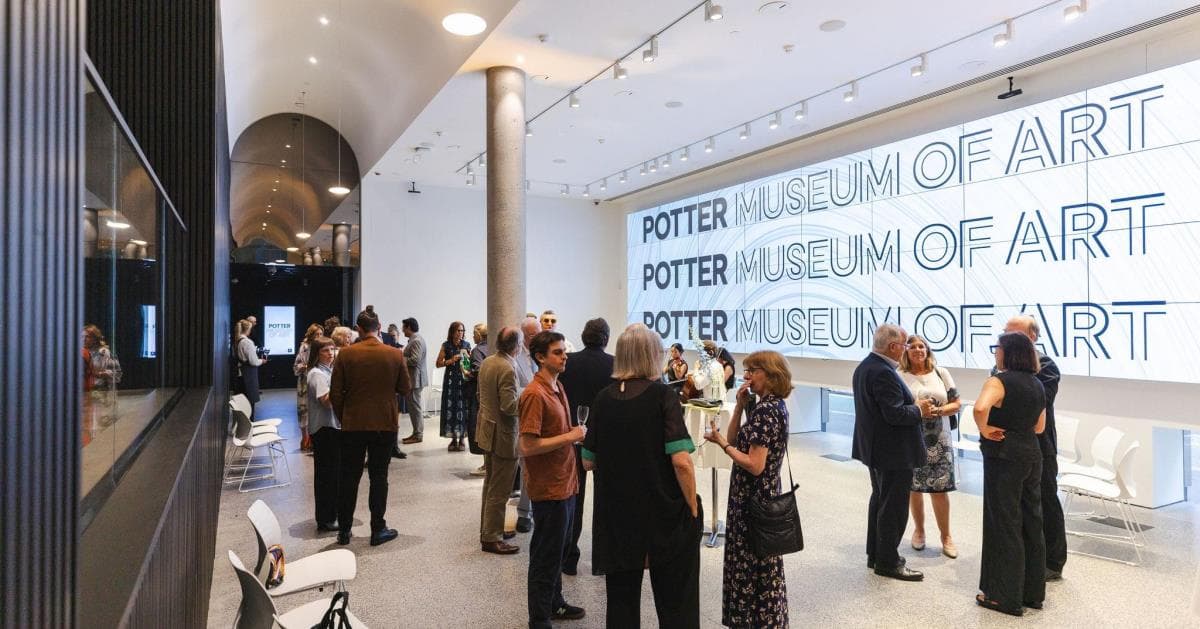 Arriving through the newly redeveloped entrance of the Potter Museum of Art, guests are welcomed by the striking architectural brilliance of Wood Marsh Architects. Bold concrete columns and dramatic black volumes create a sophisticated contrast against crisp white walls and polished floors. This contemporary space sets the scene for celebrations that demand something extraordinary.
