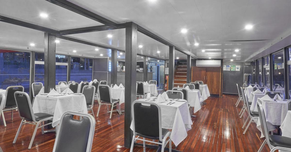 Discover a world of breathtaking beauty on a dinner cruise along the Yarra River in Melbourne. This magnificent vessel is one of the many options available for events and functions, and is designed to accommodate 140 to 170 guests, making it an ideal venue for a range of special occasions, including milestone celebrations, weddings, and corporate end-of-year parties. As you set sail along the river, you will be treated to sweeping views of the riverbanks, the city skyline, and the twinkling lights of Melbourne. The spacious interior of the boat offers a versatile space that can be transformed to suit any occasion. As you dine, the boat will glide smoothly along the river, providing a peaceful and serene backdrop for your celebration.