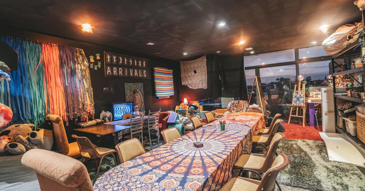 Trainscendence: Co-creative Studios, is NOT your average venue. Nestled in the heart of Collingwood, Trainscendence is a 10 floor creative powerhouse designed to inspire connection, creativity, and conscious collaboration. Whether you're hosting a corporate offsite, immersive workshop, product launch, private wellness experience, or team-building event with flair, Trainscendence offers a one-of-a-kind environment that blends industrial character with artistic soul. Each room is playfully themed by colour and mode of transport, designed to ignite curiosity and evoke a sense of childlike wonder. Begin your journey at Platform Infinity, our vibrant red train station café on the ground floor, and ascend through a series of immersive spaces...culminating in Collingwood’s most unique rooftop, home to two iconic Hitachi train carriages and a breathtaking city view.