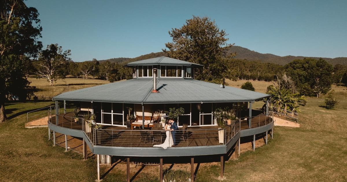 Longview Farm is an exceptional wedding venue nestled in the serene Manning Valley hinterland, offering a unique and picturesque setting for your special event. This award-winning rustic farm venue stands out with its breathtaking landscapes, exquisite facilities, and versatile accommodation options, making it an ideal choice for couples seeking a dreamy country-style wedding. The property features the world-famous Rotating House, where guests can enjoy luxurious accommodations and panoramic views of the river and valley. The venue also offers deluxe glamping tents, ensuring comfortable and memorable stays for all your guests.The highlight of Longview Farm is the Party Shed, a spacious open-sided rustic barn perfect for wedding receptions. Equipped with a world-class sound and lighting system, a stage, dance floor, and seating for up to 150 guests, this venue ensures a vibrant and enchanting atmosphere for your celebration. With stunning views of the Nowendoc River and the surrounding mountain ranges, guests can enjoy a seamless indoor-outdoor experience. The lawn games area and cocktail hour setup provide delightful entertainment options for a relaxed and enjoyable event.Longview Farm offers three stunning ceremony locations: The River Bank, The Rock Face, and The Gum Tree, each providing a beautiful backdrop for your vows. Once the ceremony concludes, guests can transition to the barn for lawn games and cocktail hour, hosted by the charming Miss Rosie, the Caravan Bar. The property allows for flexible catering options, including BYO alcohol, giving you the freedom to choose what suits your taste and budget.The venue's comprehensive packages include exclusive use of the property, a set-up and styling crew, and complimentary styling items and furnishings. Guests can extend their stay beyond the wedding day, making use of the luxurious Rotating House and glamping facilities, ensuring quality time with loved ones in a peaceful countryside setting. With a dedicated event manager and a helpful team led by Luke and Leanne, Longview Farm guarantees a stress-free and blissful wedding experience tailored to your preferences. Its beautiful, secluded location and comprehensive offerings make it a perfect choice for couples seeking a memorable and utterly romantic wedding experience.