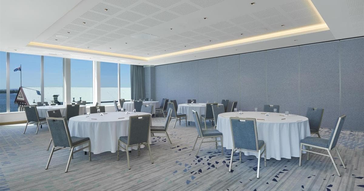 Waterside 3 is a versatile and stylish event room at DoubleTree by Hilton Perth Waterfront offering about 97 m² of flexible space with abundant natural light and water or city views. Perfect for meetings, workshops, small receptions or corporate gatherings, it accommodates up to 50 banquet or 60 theatre‑style guests, with modern audiovisual support and adaptable seating to suit your event setup.
