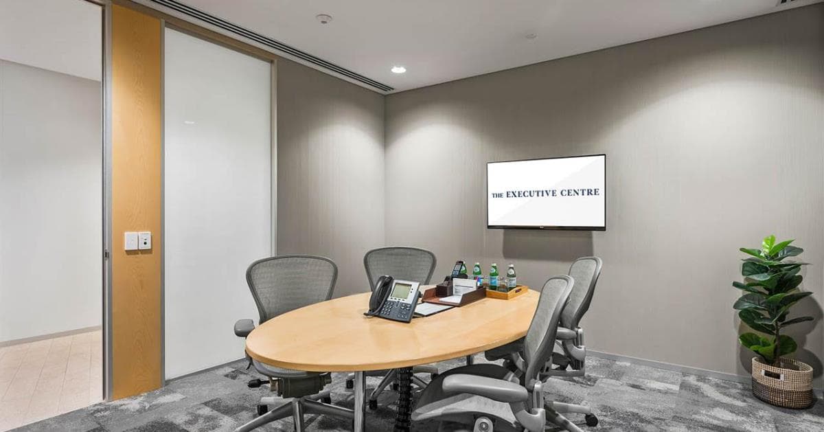 This 4-person room is perfect for hosting team a casual meeting, client briefings and interviews. This quality office suite is housed within an iconic 52-storey landmark tower which dominates the Perth Skyline. Conveniently located right in the heart of Perth’s central business district on the corner of St. Georges Terrace and Williams Street, the centre is within walking distance of major banks, eateries, retail facilities and various hotels. Booking includes: White board Receptionist service Pen & paper Tea & Coffee Note: After hour access can be arranged on a case by case basis. Please send an enquiry and we’ll confirm availability.