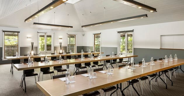 The conference foyer serves as a welcoming reception area, perfect for greeting attendees with arrival tea and hosting morning and afternoon tea breaks. With a cosy gas fireplace, it offers a warm and inviting ambience, particularly appreciated during cooler autumn and winter months, encouraging informal conversation and meaningful networking opportunities between sessions.