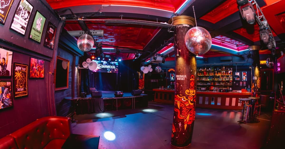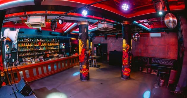 Mini Bar is a chic aesthetic, with concrete floors and exposed brick walls. It is an ideal band space, with a raised stage for performances & DJs. It offers bar stool seating, modern painted walls, and a neon-lit private bar on one side.