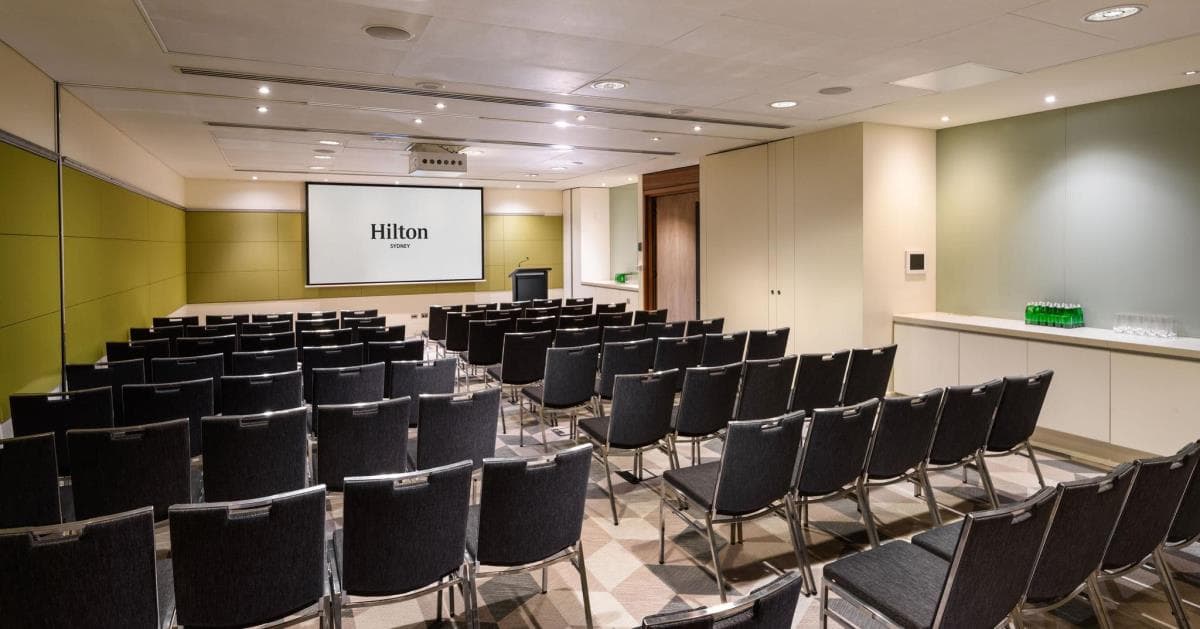 Level One at Hilton Sydney is a dedicated, executive-style meeting space designed for high-level discussions and private meetings. It features a polished, professional setting with built-in AV, comfortable seating, and air conditioning, making it ideal for presentations, strategy sessions, and smaller corporate gatherings that require a more formal atmosphere.