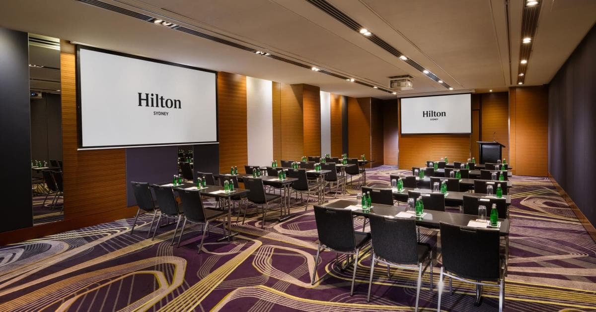 Level One at Hilton Sydney is a dedicated, executive-style meeting space designed for high-level discussions and private meetings. It features a polished, professional setting with built-in AV, comfortable seating, and air conditioning, making it ideal for presentations, strategy sessions, and smaller corporate gatherings that require a more formal atmosphere.