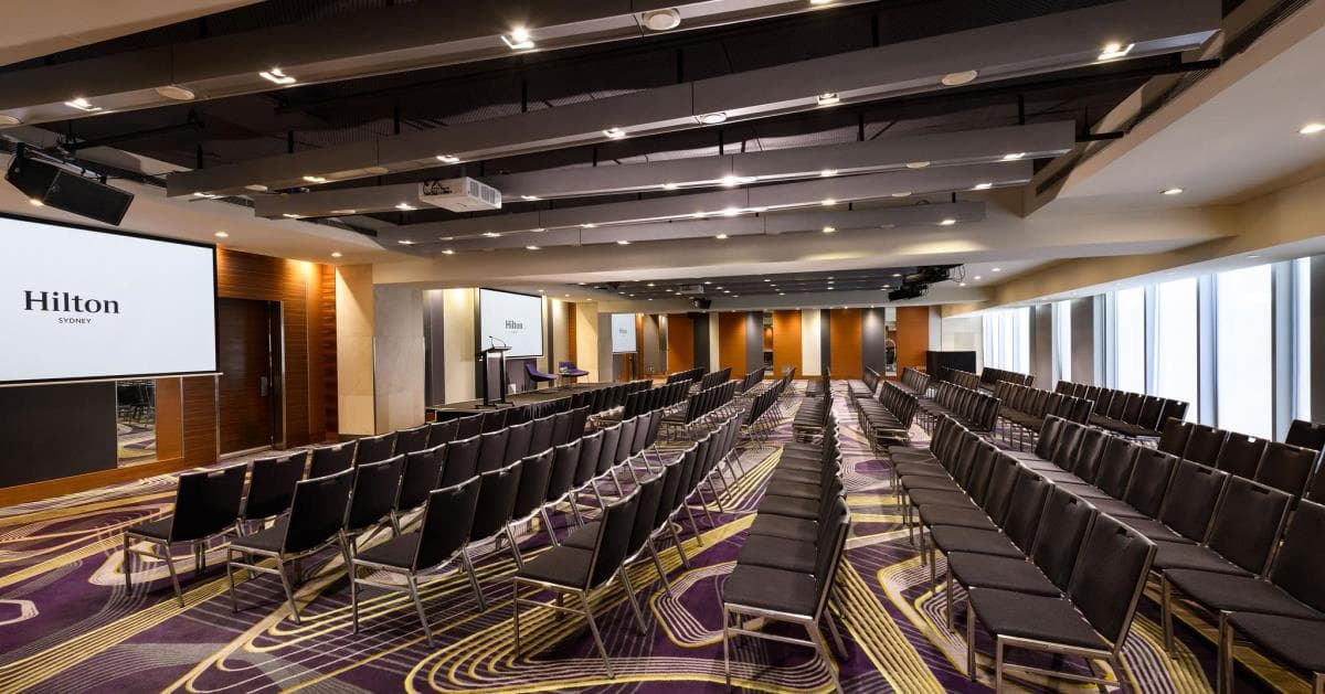 Grand Ballroom A & Ante – Hilton Sydney A luxurious, flexible event space on Level Three, featuring 488 m² with high ceilings, a pre-function Ante area, and state-of-the-art LED wall. Ideal for keynote speaker sessions, galas, conferences or weddings, it seats up to 550 guests banquet-style and up to 685 theatre-style. The Ante area is perfect for receptions or networking, while in-house catering and AV support ensure a seamless event experience.