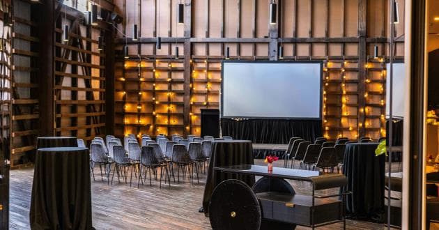 A large and versatile space, bristling with industrial chic. Wooden floorboards. High ceilings. Outdoor terrace overlooking Sydney Harbour. An epic private space at Ovolo can be set up combining combining multiple spaces so it can adjust to your event needs. Includes in-built AV projector. Choose from in-built AV equipment or a free-standing screen and data projector. Or use them both.