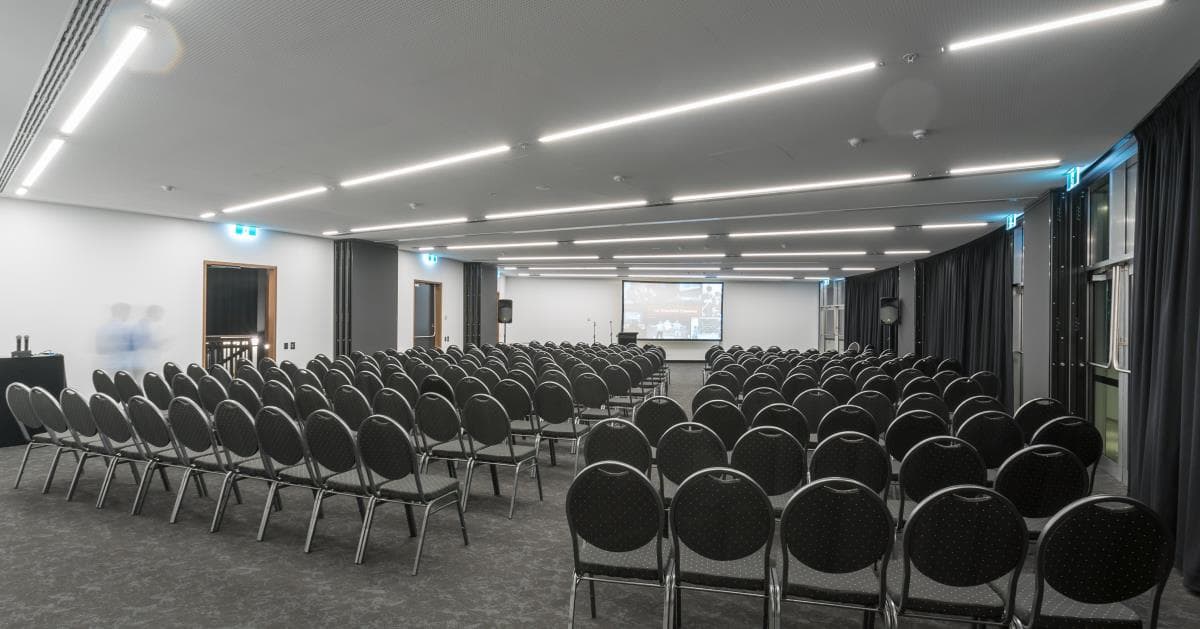 This is a flexible function room space with a total capacity of up to 140, able to be adjusted for a variety of different set ups and AV requirements. This function space can also be divided into separate rooms with capacity for up to 80 guests in theatre style. Function Room 3 - 60 pax Function Room 4 - 80 pax