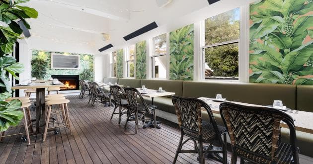 The Royal Hotel restaurant is perfect for laid-back group dining of up to 40 guests. It features a retractable roof that creates a relaxed indoor-outdoor feel, letting in plenty of natural light by day and a cosy atmosphere at night. A fireplace adds warmth and ambience in the cooler months, while the mix of inside and outside elements makes it feel open, comfortable, and effortlessly social, ideal for long lunches, casual celebrations, or relaxed dinners.