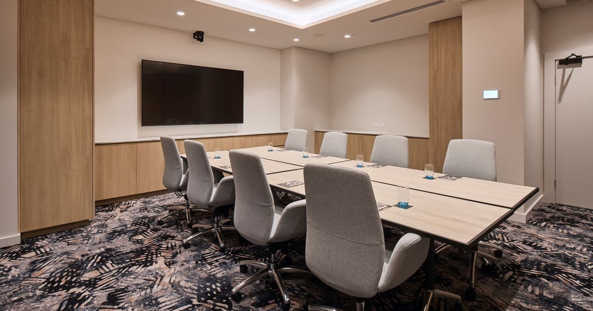 Barton 1 is a light‑filled, contemporary boardroom designed for intimate gatherings and focused meetings. With abundant natural light and a calm, professional atmosphere, this thoughtfully appointed space is ideal for productive discussions and high‑level decision‑making. Accommodating up to 12 guests, Barton 1 is equipped with state‑of‑the‑art audiovisual technology and supported by Rydges’ signature service ethos. Our dedicated events team is on hand to ensure every detail is seamlessly managed, delivering a smooth and personalised experience.