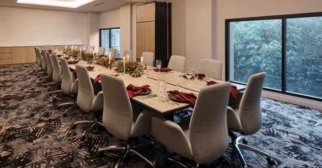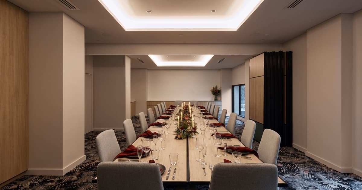 Barton 1 is a light‑filled, contemporary boardroom designed for intimate gatherings and focused meetings. With abundant natural light and a calm, professional atmosphere, this thoughtfully appointed space is ideal for productive discussions and high‑level decision‑making. Accommodating up to 12 guests, Barton 1 is equipped with state‑of‑the‑art audiovisual technology and supported by Rydges’ signature service ethos. Our dedicated events team is on hand to ensure every detail is seamlessly managed, delivering a smooth and personalised experience.
