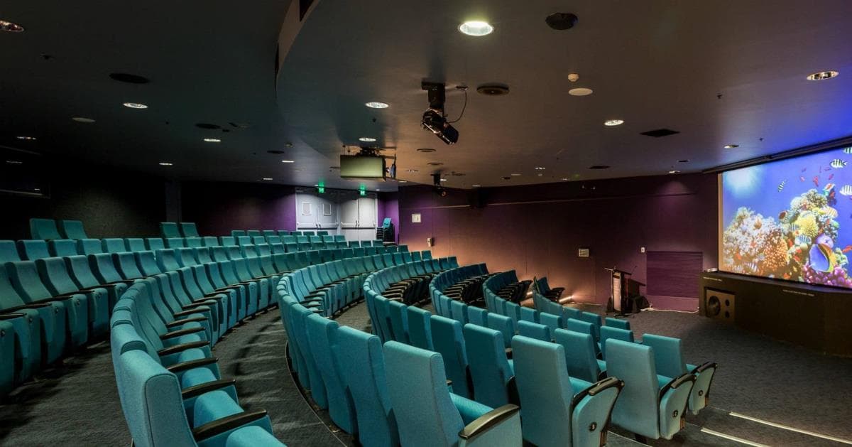 Impressive Presentation.This purpose-built tiered theatre with unobstructed views of the screen is the ideal location to host your next corporate presentation or launch. With plush seating and superb acoustics, it’s the perfect way to enhance your corporate image for conferences, seminars, lectures and workshops. It boasts state-of-the-art presentation equipment and facilities and can comfortably seat 210 guests. Venue hire includes data projection, screen and microphones. Catered food and beverages are served in the adjacent Tasman Light Gallery.