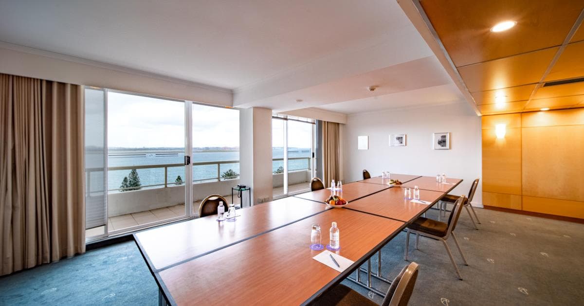 Offering panoramic views of the historic Botany Bay and the hustle and bustle of Sydney International Airport, the Panorama Room is located centrally on Level 12. The room features private refreshment facilities, open and bright spaces, and an exclusive balcony making it ideal for catering breaks overlooking the beach. A most popular room for private board meetings, training, and book early for the best NYE.