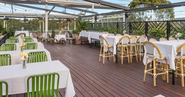 Offering an exclusive wooden deck complete with festoon lighting and a retractable roof area high above Macquarie Park. The Rooftop Terrace is the perfect space for a special celebration or corporate get-together with plenty of space for you to bring in theming, backdrops and media walls. With portable heaters in the space in the winter, and misters in the summer, The Rooftop Terrace is perfect for canape events and grazing tables all year round, with scenic views sure to impress.