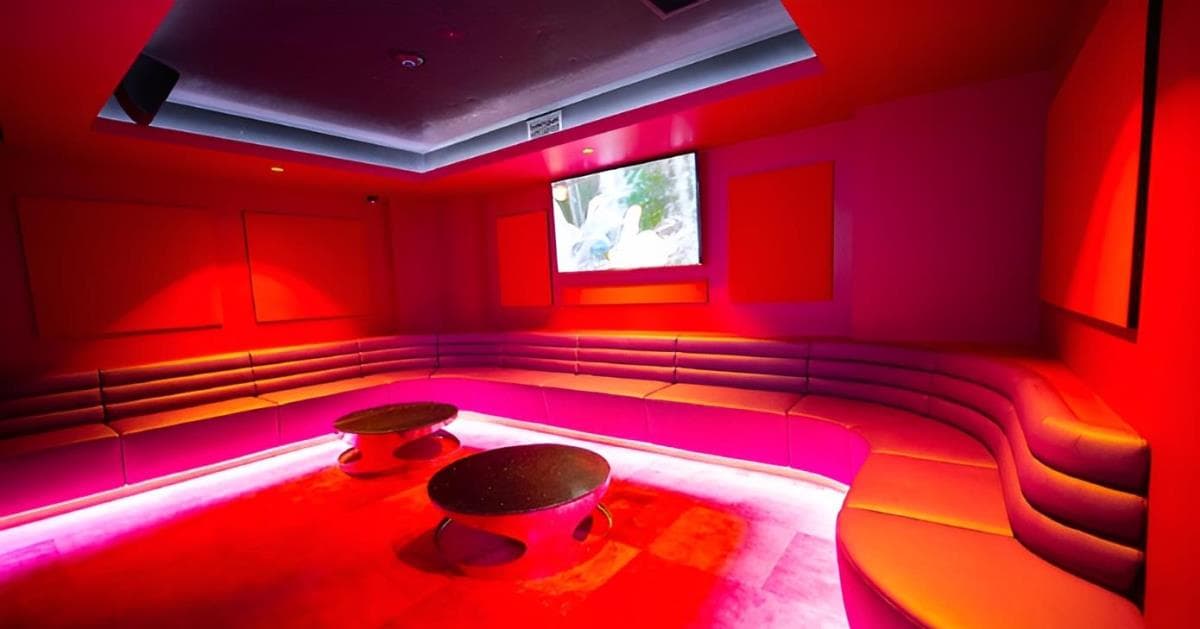 the richness of luxurious red lounging areas, enhanced by ambient mood lighting that sets a sophisticated tone.