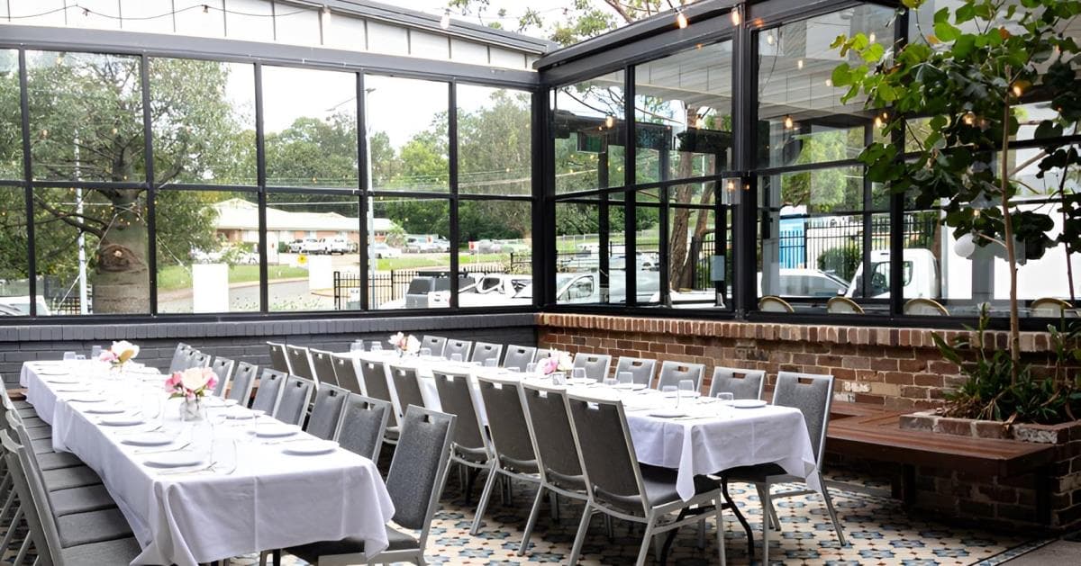 Combining the relaxed charm of The Island with the elevated outlook of the Sky Tables, this semi-private space is perfect for corporate gatherings, birthdays, and social celebrations. Framed by the Big Louvre windows, The Island features wooden tables and striped bamboo chairs for a laid-back holiday feel—ideal for seated banquets, grazing tables, or cocktail masterclasses. Flowing through to the Sky Tables, guests can enjoy views over the leafy skyline of Macquarie Park, surrounded by potted palms and The Gov’s hand-painted mural. With seating and standing room throughout and easy access to the bar, it’s a vibrant space designed for mingling and memorable events.