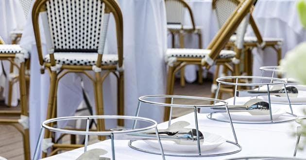 Set with assorted cocktail tables and 3 booths ready for you and your friends to sit or stand while you enjoy the surrounding greenery, this section will be roped off for just you and your guests, and has plenty of room for you to decorate to bring your vision to life. Complete with a retractable roof and heaters in the winter, comfort all year round can be provided.