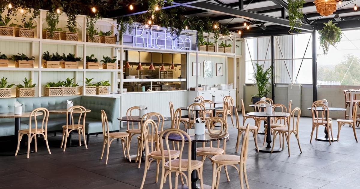 Combining the relaxed charm of The Island with the elevated outlook of the Sky Tables, this semi-private space is perfect for corporate gatherings, birthdays, and social celebrations. Framed by the Big Louvre windows, The Island features wooden tables and striped bamboo chairs for a laid-back holiday feel—ideal for seated banquets, grazing tables, or cocktail masterclasses. Flowing through to the Sky Tables, guests can enjoy views over the leafy skyline of Macquarie Park, surrounded by potted palms and The Gov’s hand-painted mural. With seating and standing room throughout and easy access to the bar, it’s a vibrant space designed for mingling and memorable events.
