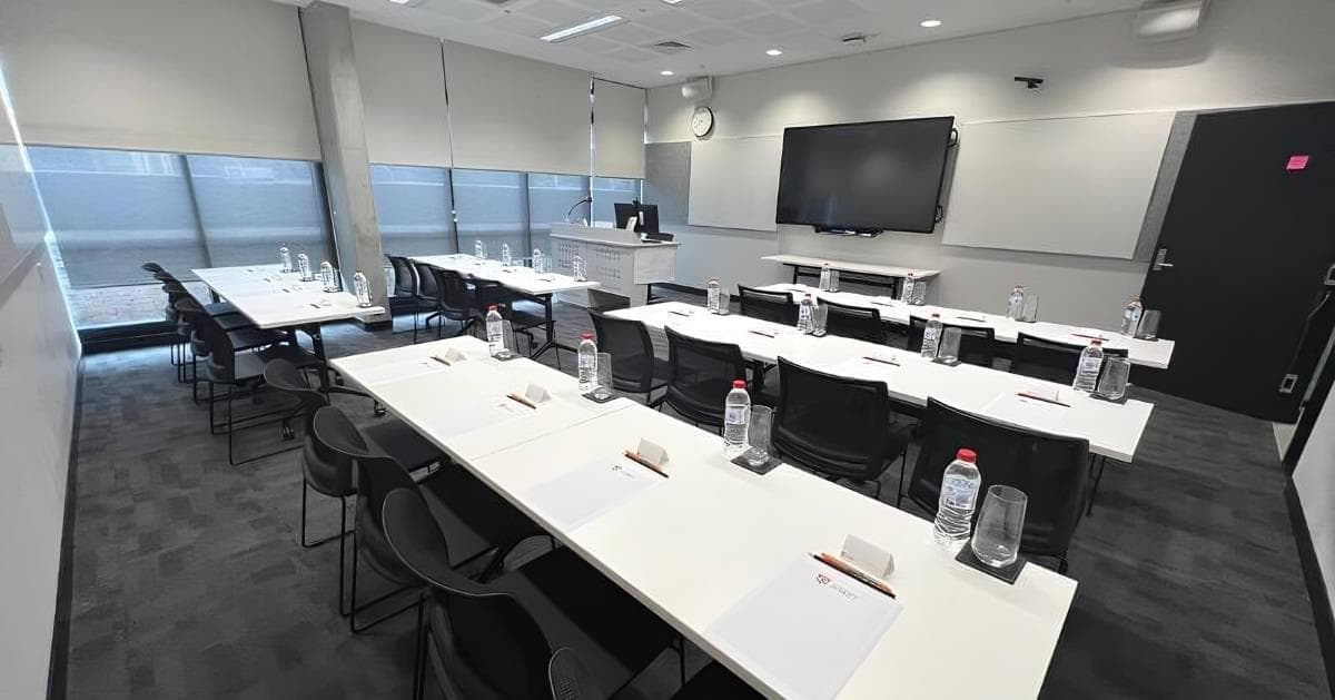 We are thrilled to offer you a room that is large enough to be set up in a variety of configurations, including a U Shape for 17 persons, Classroom for 25 persons, or Boardroom for 21 persons. When you book with us, you get access to our premium conference space, as well as a range of essential amenities that are included in the rate. You'll receive a delegate pack, complete with a pen, notebook, mints, and water, to help you get started. We also provide a microphone, speakers, and an LCD monitor, as well as a laptop connection, to make sure that your presentations run smoothly. Our air-conditioned room is equipped with reliable Wi-Fi, whiteboards, and an IR assistive listening system that connects with hearing aids.