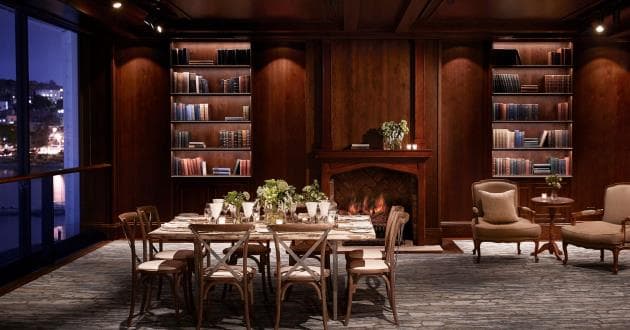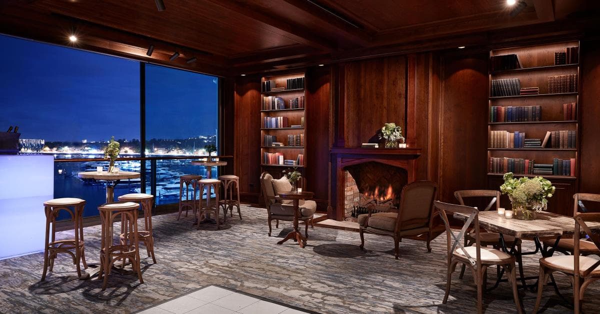 The Commodores Room is an intimate waterfront space featuring warm, refined furnishings, with abundant natural light and exceptional water views.