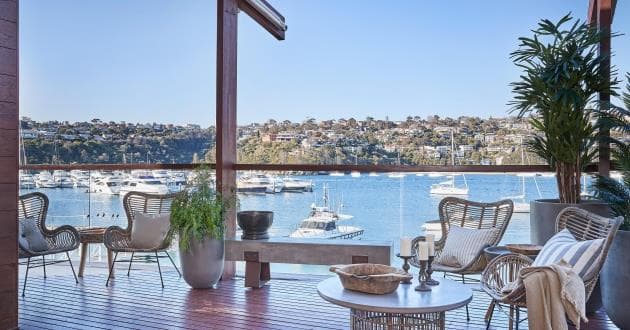Room 4 offers a warm and inviting atmosphere with generous space and natural light. It opens directly onto a large balcony, providing a perfect spot to relax and take in the scenic views over Mosman.