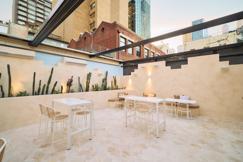 If tacos and tequila are your love language, Hotel Nacional should be high on your rooftop hit list. This colourful Mexican-inspired spot brings vibrant flavours and even brighter vibes to the CBD skyline. The rooftop is lively without being chaotic, making it ideal for long catch-ups fuelled by margaritas and share plates. It’s festive, flavour-packed and guaranteed to spice up your next rooftop session.