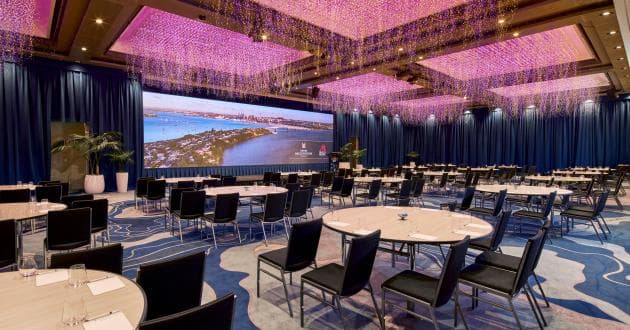 This room can host up to 550 delegates banquet style, 800 theatre style or 1,000 for cocktails. This versatile room has the flexibility to be divided into four separate, fully sound proofed rooms for smaller meetings or concurrent sessions, each seating from 20 to 400 delegates theatre style. All rooms, Millennium Ballroom, Tasman I and II, and Piha are accessible from Estelle’s and the pre-function area with abundant views of Auckland city, the perfect space for catering breaks and cocktail functions. Our recently renovated Grand Ballroom features The Sky Garden lighting sculpture, created by James Russ studio. With over a million hand-assembled LED lights meticulously forming this huge installation, the Grand Ballroom and its adjacent spaces are transformed into a realm of enchantment.