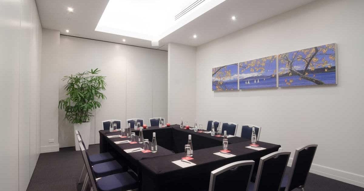 Kingston room 4 is a 29.2sqm meeting space perfect for smaller boardroom meetings. Can be used in conjunction with the adjoining Kingston room 3 for larger conferences and dinners. Dividable walls enable this venue to be linked up to four other rooms, providing a total area of 205sqm. Kingston room 4 features individual climate controlled air-conditioning, state of the art built-in audio visual equipment including a dedicated on-site audio visual technician for technical support, and Instant communication to your dedicated event supervisor.