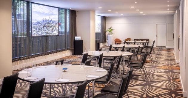Recently refurbished, Coromandel features floor-to-ceiling windows with blackout and sheer drapes, and newly installed walls to split the space into three separate, self-contained spaces. This venue is perfect for an event that requires both natural light and a focused meeting environment. The Coromandel can host up to 80 delegates theatre style or 50 delegates classroom style and is located on level one adjacent to Estelle’s.