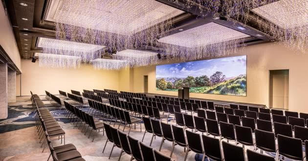 All of the spaces in the Grand Ballroom: Millennium Ballroom, Tasman I and II, and Piha are accessible from Estelle’s and the pre-function area with abundant views of Auckland city, the perfect space for catering breaks and cocktail functions. Our recently renovated Grand Ballroom features The Sky Garden lighting sculpture, created by James Russ studio. With over a million hand-assembled LED lights meticulously forming this huge installation, the Grand Ballroom and its adjacent spaces are transformed into a realm of enchantment.
