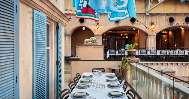 Overlooking the lively piazza below, the Venetian Balcony offers a unique setting with a touch of European romance.
