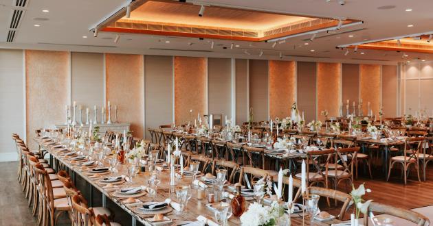The Pacific Room, our signature event space, exudes the relaxed sophistication of a Hamptons-inspired beach house. Bathed in natural light, this expansive room opens onto a generous east-facing balcony, offering sweeping waterfront views from every angle — the perfect setting for an unforgettable event by the harbour.