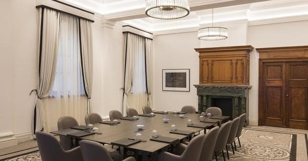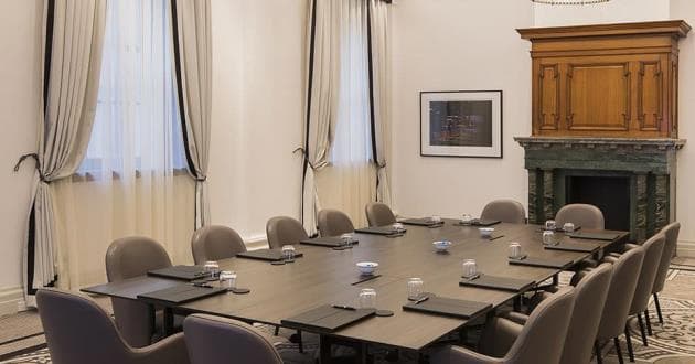 Unlock a Sydney CBD meeting room filled with heritage features: original ornate ceilings, carved wooden doors, art nouveau lighting and a bold marble fireplace. As an ode to its rich history, discover framed caricatures of Premier’s gone by...