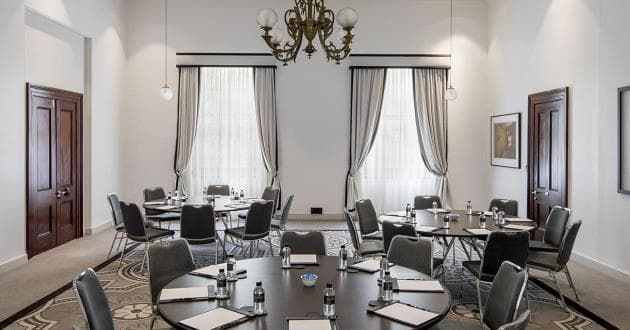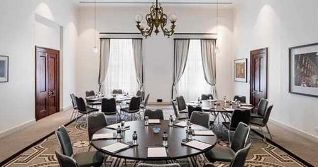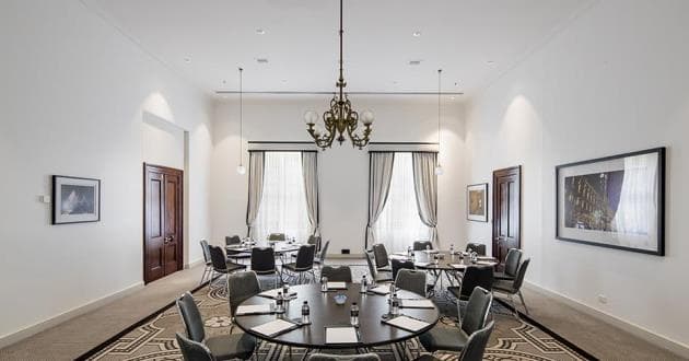 Unlock a Sydney CBD meeting room filled with heritage features: original ornate ceilings, carved wooden doors, art nouveau lighting and a bold marble fireplace. As an ode to its rich history, discover framed caricatures of Premier’s gone by...
