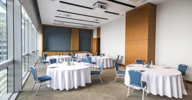 Our second largest meeting room at 112sqm, it can comfortably accommodate up to 103 guests. Ideally located in a corner of the building, the room is literally flooded with natural light thanks to two floor-to-ceiling window walls – making i...