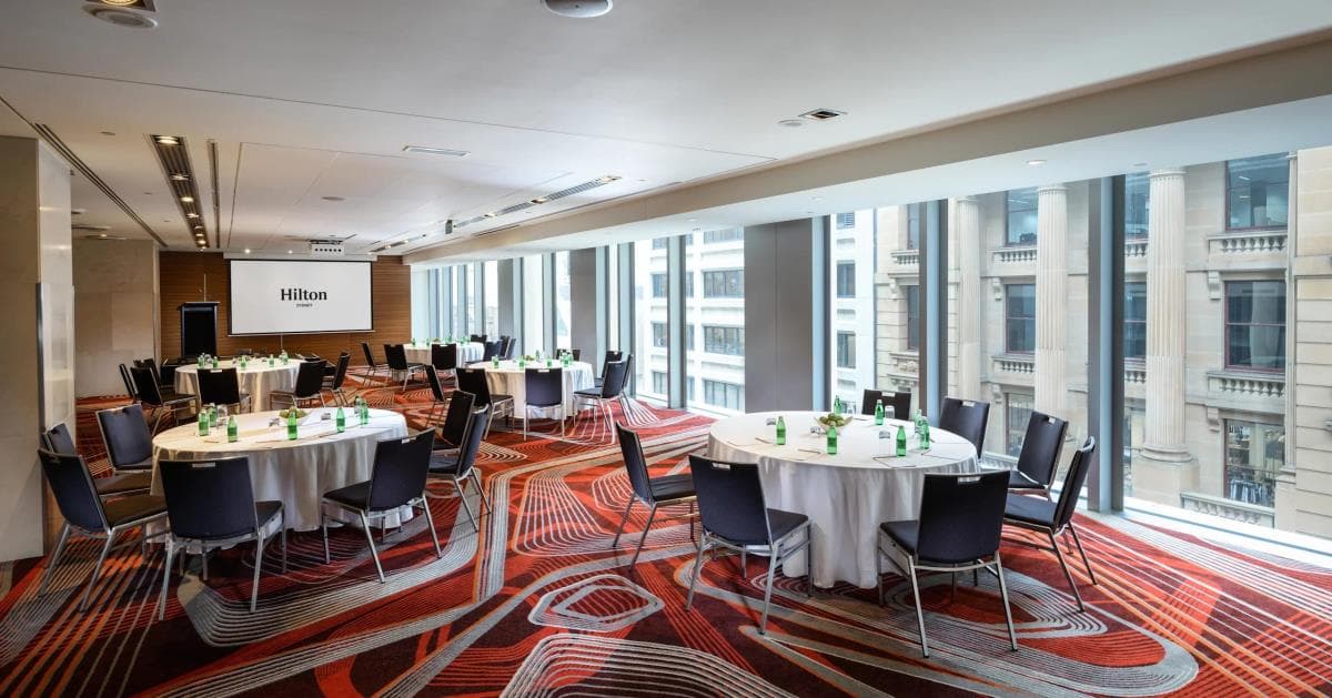 Level One at Hilton Sydney is a dedicated, executive-style meeting space designed for high-level discussions and private meetings. It features a polished, professional setting with built-in AV, comfortable seating, and air conditioning, making it ideal for presentations, strategy sessions, and smaller corporate gatherings that require a more formal atmosphere.