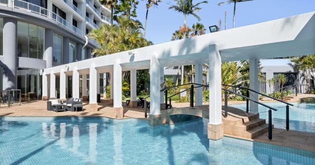Good stay. Rooms spacious and clean. Had pool view--nothing special but good enough. Rooms have very small/narrow balconies so you can sit outside. Hotel on main road like others and a couple of blocks off the beach. Hotel is not really in a main area like Surfer's Paradise or Broadside Beach but tram rides and walks not too bad and tram station is right out front of hotel. Staff was helpful and excellent. Did not use pool as was much more interested in the beach. Fitness center was better than most places claiming to have one but was hidden in the basement and only accessible by certain elevators, so needed guidance to find. We found gas station across the street for some basics and restaurants or shops nearby for breakfast and other meals.