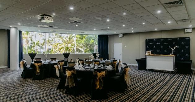 The grand ballroom hosts large weddings and is suitable for meeting or any event space requirements. This function room can accommodate up to 580 people standing and 350 seated. Below are some inclusions for function room use. They have an on-site audiovisual tea and dedicated meetings manager to ensure your event runs smoothly.