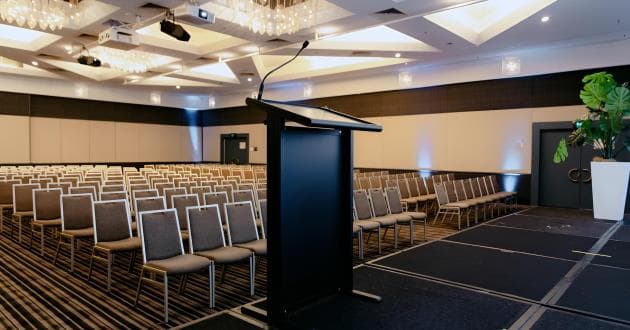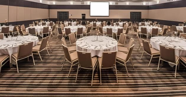 The grand ballroom hosts large weddings and is suitable for meeting or any event space requirements. This function room can accommodate up to 580 people standing and 350 seated. Below are some inclusions for function room use. They have an on-site audiovisual tea and dedicated meetings manager to ensure your event runs smoothly.