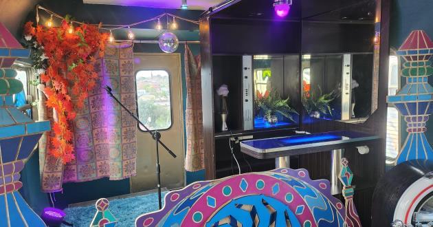 🚌 Step aboard the Magic School Bus, a bohemian-inspired room that opens the mind and heart. With its flowing fabric ceiling, rich textures, and intricately quirky details, this bus-shaped room is a feast for the senses and a haven for crea...