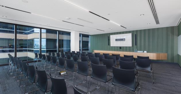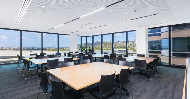 Welcome to the Karri Boardroom: A Stunning, Modern 14-person boardroom, with professional office chairs, large table, Logitech video conferencing equipment, TV, Laptop HDMI connection, chilled filtered water, client greetings. Enjoy sweepi...