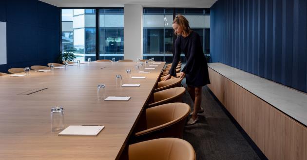 Welcome to the Karri Boardroom: A Stunning, Modern 14-person boardroom, with professional office chairs, large table, Logitech video conferencing equipment, TV, Laptop HDMI connection, chilled filtered water, client greetings. Enjoy sweepi...